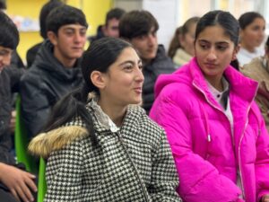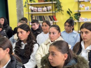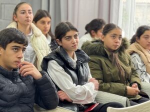 Հանդիպման ավարտին աշակերտները պատրաստել էին անակնկալ, հանդես գալով գեղեցիկ ասմունքով և կիթառային կատարումներով, որին միացան նաև մեր ուսանողները՝ ստեղծելով ջերմ, ընկերական և ոգեշնչող մթնոլորտ։