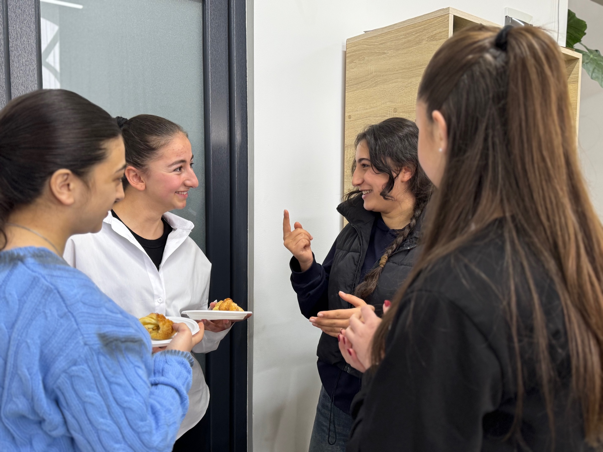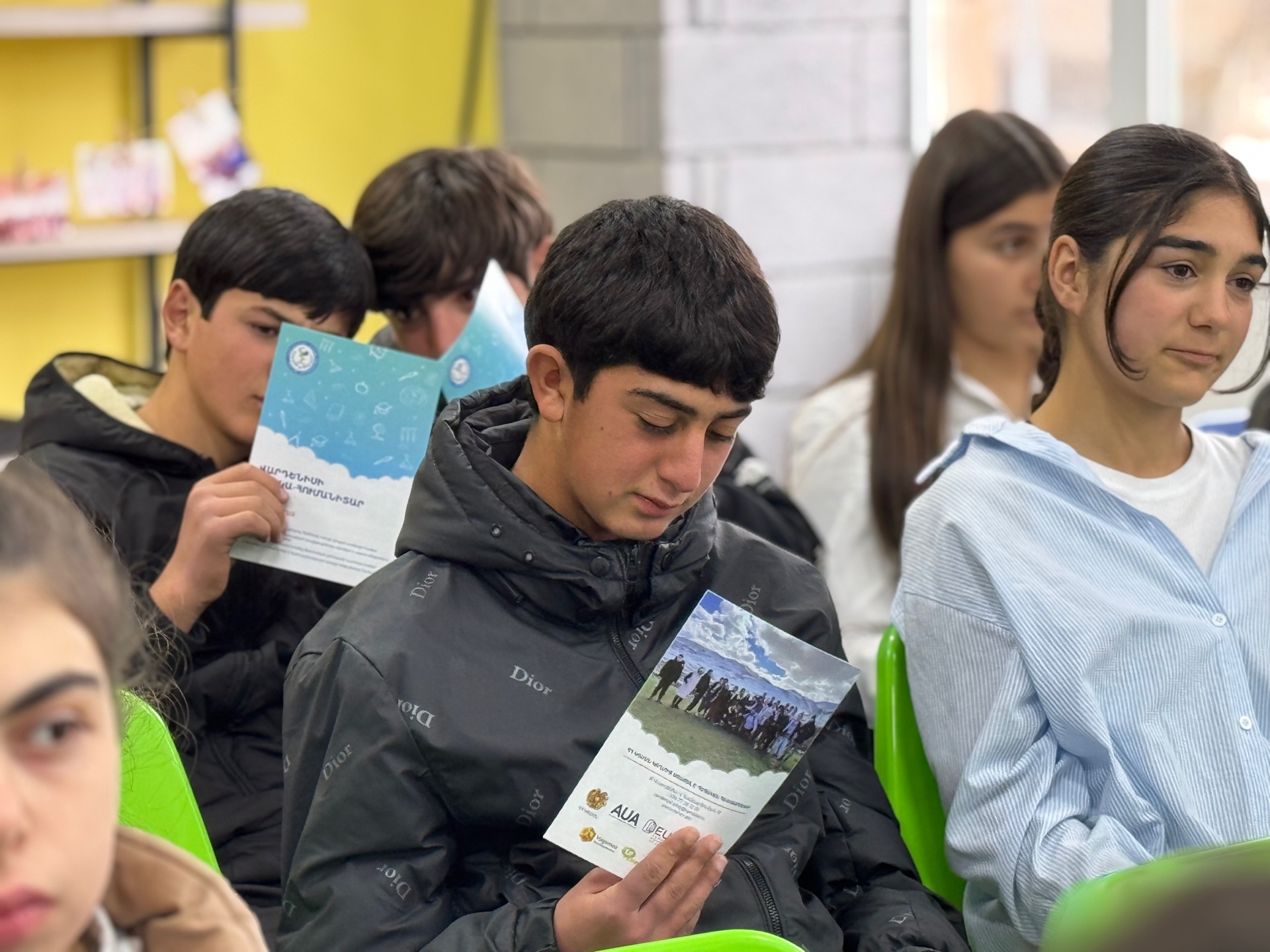 Հանդիպման ավարտին աշակերտները պատրաստել էին անակնկալ, հանդես գալով գեղեցիկ ասմունքով և կիթառային կատարումներով, որին միացան նաև մեր ուսանողները՝ ստեղծելով ջերմ, ընկերական և ոգեշնչող մթնոլորտ։